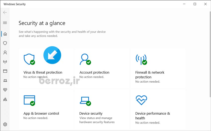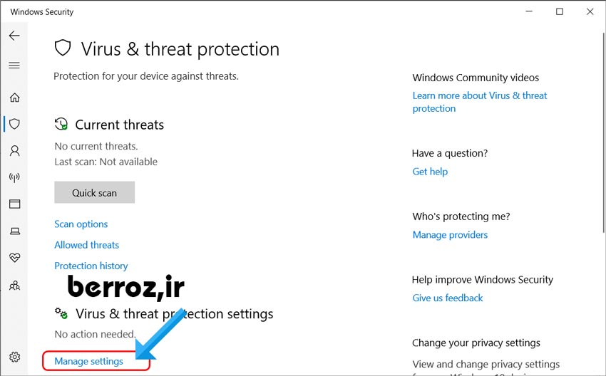 بعد از باز شدن آنتی ویروس روی قسمت Virus & threat protection کلیک کنید تا وارد قسمت اصلی تنظیمات آنتی ویروس ویندوز شوید.