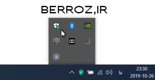 برای یادگیری نحوه غیرفعال سازی windows defender در ابتدا باید بتوانید این برنامه را اجرا نمایید. برای اجار کردن ویندوز دیفندر در قسمت task bar روی تیک show hidden icons کلیک کنید و روی آیکون آن کلیک کنید »