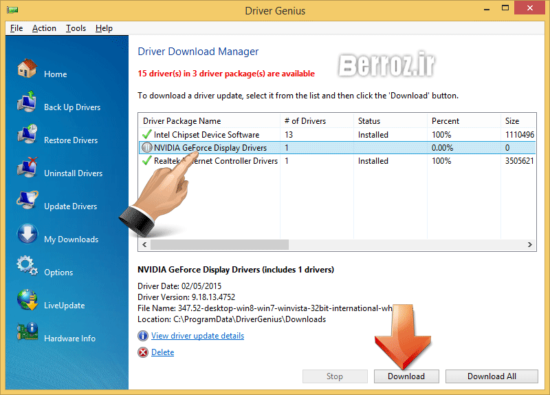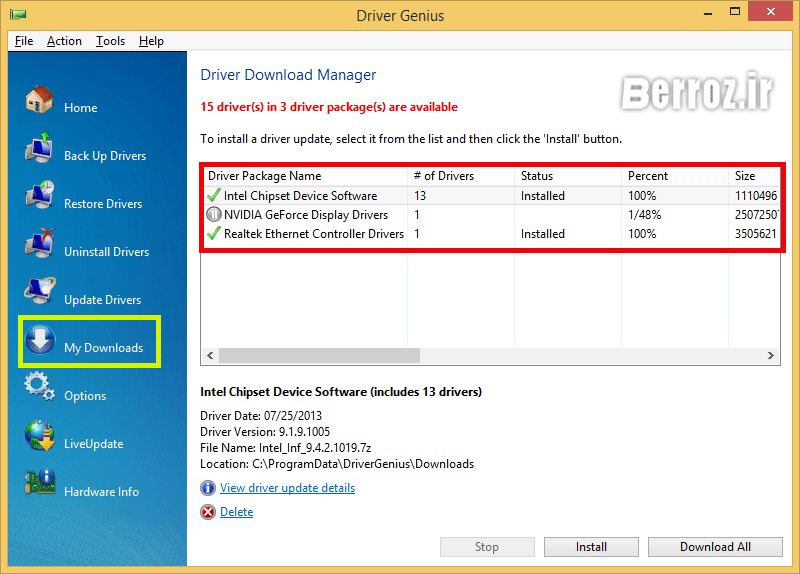 My Downloads : در این قسمت می تونید درایورهایی که دانلود شدن رو ببینید, و یا نصب و یا دانلود کنید »