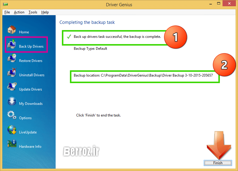 1. پیغام موفقیت آمیز بودن عملیات بک آپ گیری درایورها