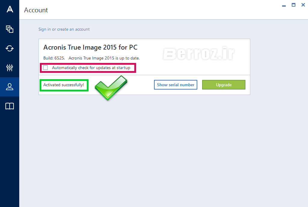 نرم افزار به راحتی فعال می شود ” Activated successfully ” که تیک گزینه ی Automatically check for updates at startup را برمی داریم »
