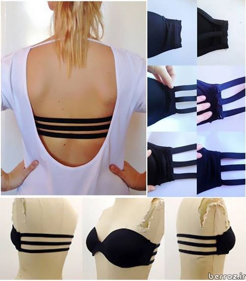 یا میتونید به وسیله سه تا کش پشت سوتین رو زیبا کنید که دیگه نیازی هم نیس مخفی باشه. کافیه سه عدد کش رو از پشت به دو طرف سوتین بدوزید.