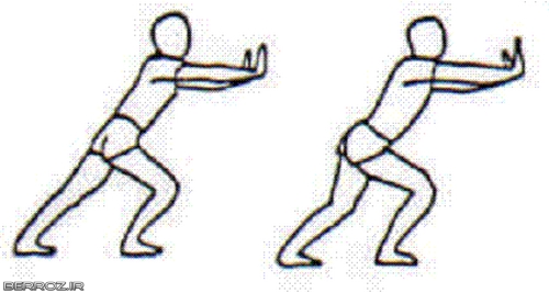 یکی از زانوها را خم کرده و پای عقب صاف باشد و در تمرین دوم هر دو زانو خم باشد. برای هر حرکت، 20 ثانیه نگه دارید و حس کشش را در پا متوجه میشوید.برای هر پا و در هر دو تمرین سه بار انجام دهید. دقت داشته باشید که پای جلویی از دیوار 15