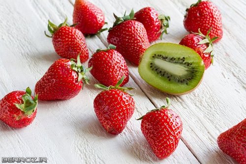 ماسک کیوی و توت فرنگی جهت لایه برداری لب و روشن شدن لب