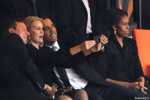 اوباما و کامرون که ظاهرا وقت بهتری را برای گرفتن عکس با نخست وزیر زن دانمارک پیدا نکرده بودند در مراسم یادبود ماندلا به عکس گرفتن با او پرداختند. دیلی میل در عبارتی کنایه آمیز افزود : شاید رهبران جهان این عکس ها را برای فیس بوک خود می خواهند و این در حالی بود که جمعیت بسیار زیادی برای احترام به ورزشگاه آمده بودند ولی اوباما و کامرون به دنبال گرفتن عکس یادگاری با خانم” هله تورینگ اشمیت” بودند.