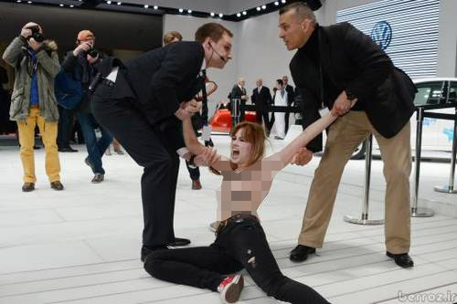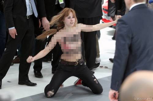 سه معترض عضو گروه های فمینیستی در اعتراض به بازداشت یکی از زنان فمینیست روسی جلوی رئیس جمهور روسیه عریان شدند.