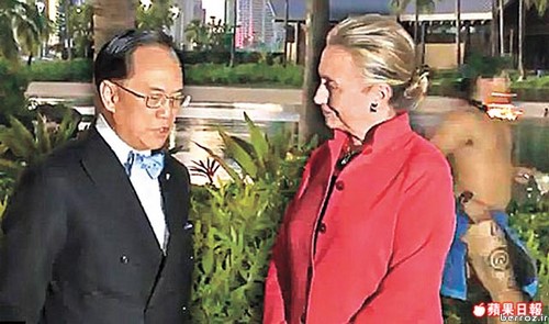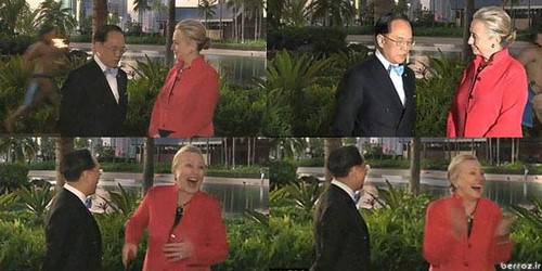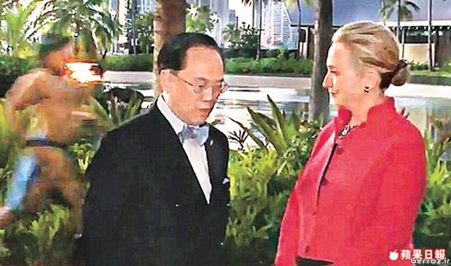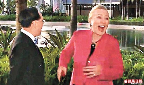 چند روز پیش هیلاری کلینتون در شهر هونولو دیداری با رئیس دولت هنگ کنگ داشت و باو درحال صحبت کردن در مقابل دوربین های تلویزیونی بود که ناگهان یک مرد نیمه برهنه از پشت سر آنها عبور کرد!