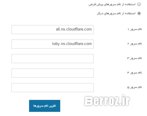 در این مرحله DNS هایی رو که باید روی dns دامنه ست کنید, مشخص می کنه. که باید به قسمت مدیریت دامین مراجعه کنید یا اگر دامنه ی .ir دارید به ایرنیک مراجعه و از اونجا dns ها رو ست کنید »