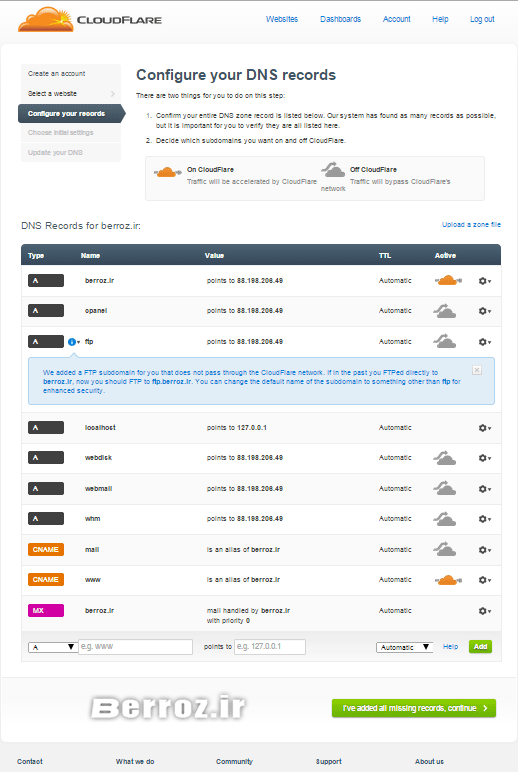 برای رفتن به مرحله ی بعد در قسمت انتهایی صفحه روی Ive added all missing records, continue کلیک می کنیم »