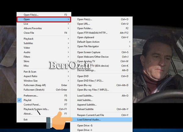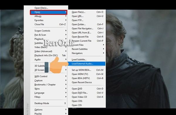 روی فیلم راست کلیک کنید و از گزینه Open روی Load External Audio کلیک کنید »
