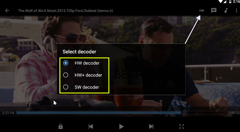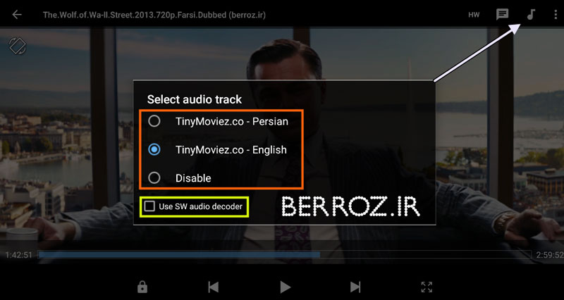 با زدن گزینه Use SW audio decoder میتوان کیفیت صدای فیلم را در صورت پشتیبانی کردن اسپیکرهای دستگاه بالاتر برد.