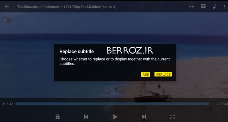 در این قسمت اگر فیلم دارای زیرنویس باشد از شما سوال میکند که میخواهید این زیرنویس را به فیلم اضافه کنید که روی ADD میزنیم یا جایگزین زیرنویس فعلی کنید که روی REPLACE میزنیم. به دلخواه یکی را انتخاب کنید »