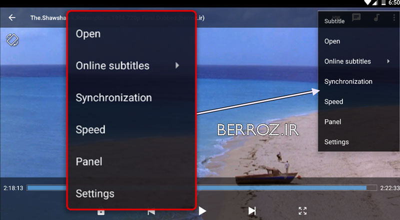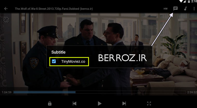 پخش زیرنویس فیلم در اندروید : این قسمت اگر فیلم شما دارای زیرنویس است میتوانید آن را فعال یا غیرفعال کنید »