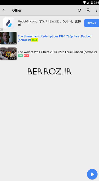 در اینجا دو فیلم در پوشه من وجود دارد که جلوی آنها در کادر سبز نوشته SRT یعنی این فیلمها همراه خود دارای زیرنویس هستند. اگر فیلمی را تا الان پخش نکرده باشید روبروی آن با کادر قرمز مینویسد NEW.