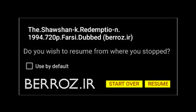 اگر فیلم را قبلا اجرا کرده باشید و قطع کرده باشید در هنگام پخش از شما میپرسد آیا میخواهید ادامه آن را از آنجاییکه قطع کردهاید ببینید ؟ که روی RESUME بزنید، ولی اگر میخواهید از نو پخش شود روی START OVER بزنید »