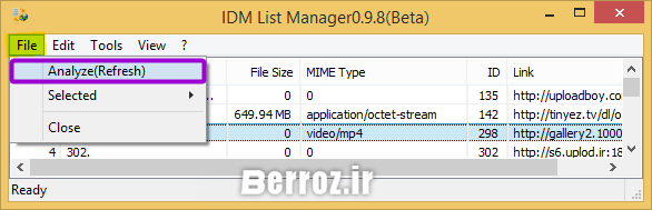 Downloads List Manager : لیست دانلودهای ما. با کلیک روی File و (Analyze(Refresh میتوانید لیست دانلودها را مشاهده و با استفاده از امکانات گزینههای Tools و View به بکآپگیری از لیست دانلودها و یا فقط قسمتهای خاص مانند : لیست فایلهای فشرده و یا فقط فایلهای صوتی و تصویری و … اقدام کنید »