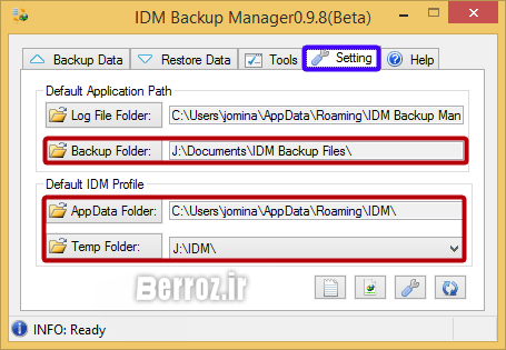 تب Setting : در این تب شما میتوانید پوشه محل ذخیرهی فایلهای بکآپ را تغییر داده » Backup Folder