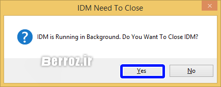قبل از اجرا اگر نرم افزار internet download manager در حال اجرا باشد، از شما میخواهد با کلیک بر روی Yes از آن خارج شوید »