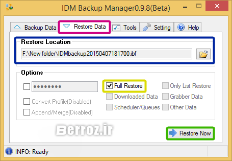 آموزش بازگردانی بک آپ نرم افزار اینترنت دانلود منیجر