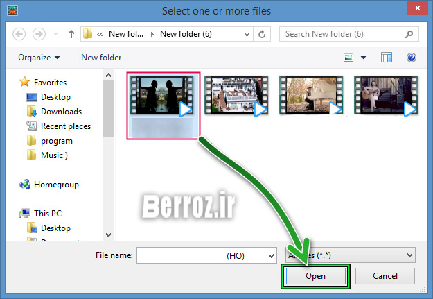 به پوشه ی مورد نظر رفته و بعد از انتخاب فایل یا فایل ها روی Open کلیک می کنیم »