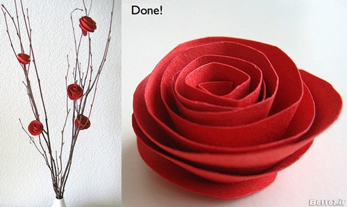 برای ساختن این گل رز ما نیاز به یک مقوای قرمز دارید.