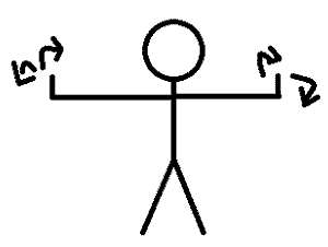 موازی قرار بگیرد. سپس دست‌ها را بچرخانید، به گونه ای که دست‌ها حالت صاف خود را از دست ندهند و فقط از