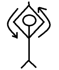 دست‌های خود را از طرفین باز کنید طوری که کاملا دست صاف باشد (از آرنج خم نشده باشد) و با زمین در حالت