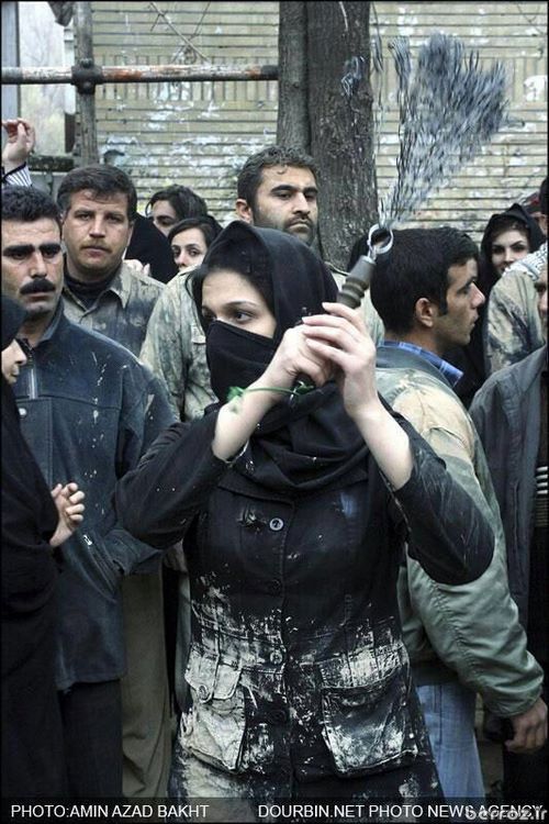 عزاداری های خیابانی ماه محرم معمولا عزاداری هایی مردانه است و زنان بیشتر در آن تماشی چی بوده و یا در متن مراسم نیستند. در این تصویر زنی دیده می شود که در مردانه ترین شیوه عزاداری های مرسوم در ماه محرم، زنجیرزنی، حاضر است.