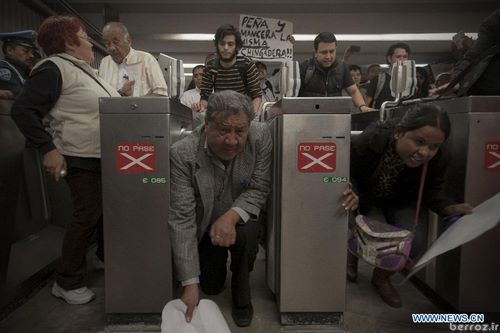 عکس های اعتراض عجیب به گران شدن بلیت مترو در مکزیکو سیتی اعتراض عجیب به گران شدن بلیت مترو شهروندان شهر مکزیکو سیتی روز گذشته در اقدامی هماهنگ با هم به جای خرید بلیت مترو از روی ” گیت ” های بلیت ایستگاه های قطار شهری رد شدند تا این گونه اعتراض خود به افزایش قیمت بلیت ها را نشان دهند.