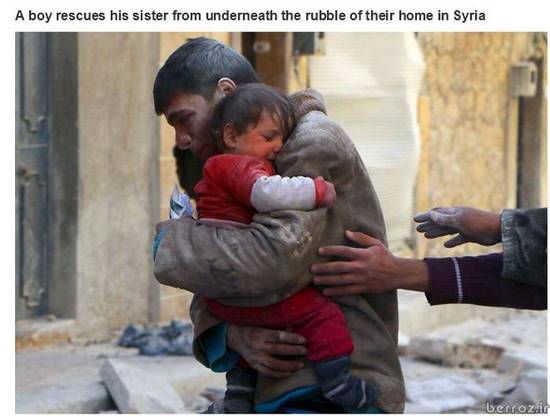 سوریه : اشک های برادر از نجات خواهرش در بمباران خانه شان