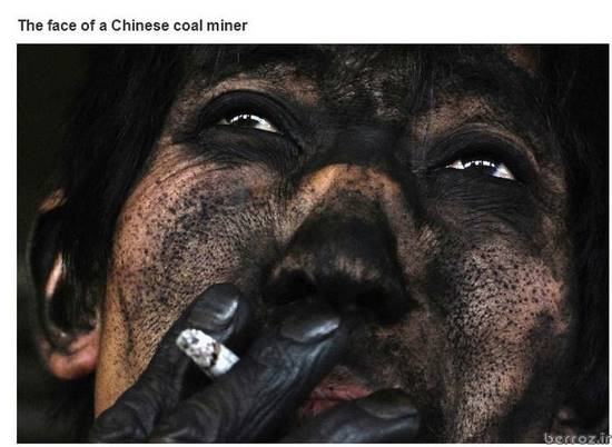 صورت یک کارگر چینی که در معدن مشغول به کار هست .