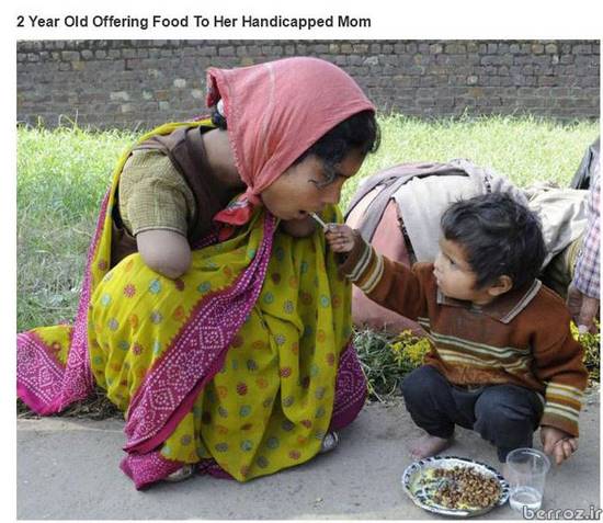 غذا دادن کودک دو ساله ! به مادر معلولش …