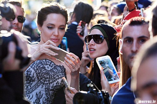 در حاشیه ی حضور آنجلینا جولی و بردپیت در مراسم فرش قرمز استرالیا , آنجلینا جولی با یک دختر محجبه مسلمان یک عکس سلفی گرفتند …