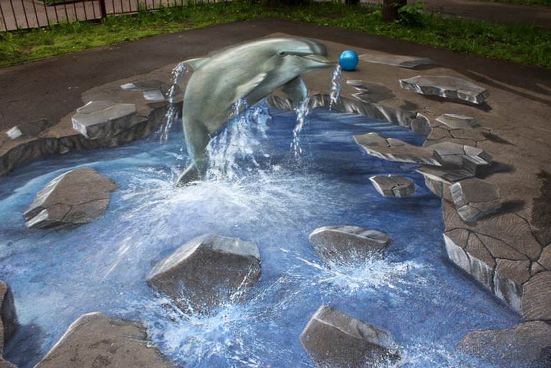 نقاشی های 3 بعدی روی زمین و خیابان