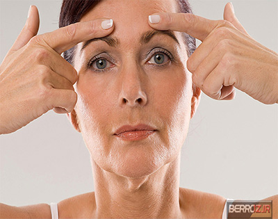5 ♦ ابرو هایتان را بالا ببرید و ۵ ثانیه نگه دارید. چشم هایتان را تا جایی که می توانید باز کنید و لب هایتان را روی هم فشار دهید. این کار را ۵ بار تکرار کنید.