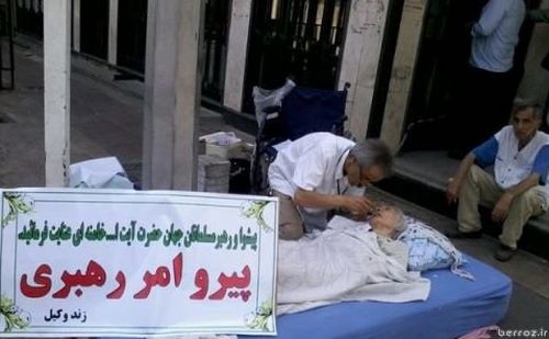 حوالی صبح امروز ساكنان محدوده خيابان پاستور با تصوير عجيبی رو به رو شدند. پيرزنی در حال احتضار بر روی تشك در كنار ايست و بازرسی نهاد رياست جمهوری با بريده هايی از روزنامه های جام جم و همشهری و بنر هايی مبني بر درخواست كمك و رسيدگی از سوی مقام معظم رهبری.
