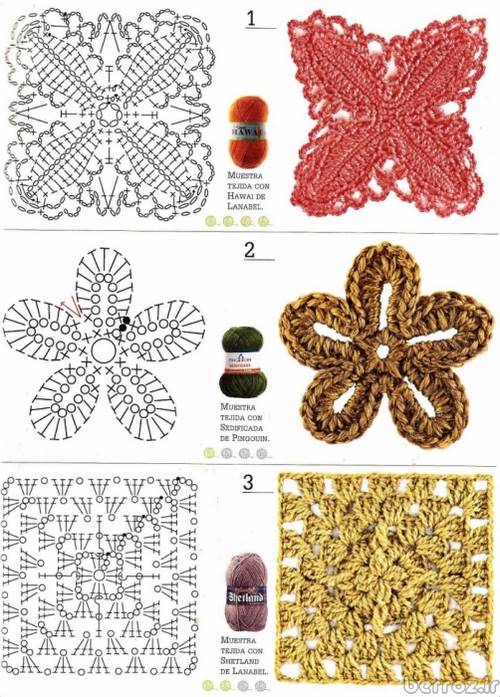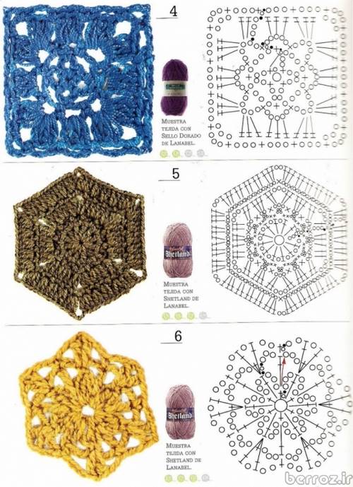 چند طرح موتیف قلاب بافی + نقشه | Knitted Motifs